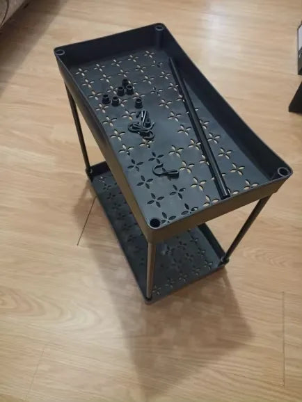 Transform your cluttered under-sink area into a wonderfully organized space. With its sleek design and sliding drawers, this organizer fits most cabinets, offering a quick and chic solution to chaos. Hang utensils or toiletries on the handy side hooks. Built with high-quality ABS plastic and wrought iron, it's durable and resistant to rust. Say farewell to clutter, and embrace the elegance of organization.